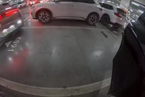 男子停车后后座放东西,旁边车子碰到车门导致男子腿部被夹